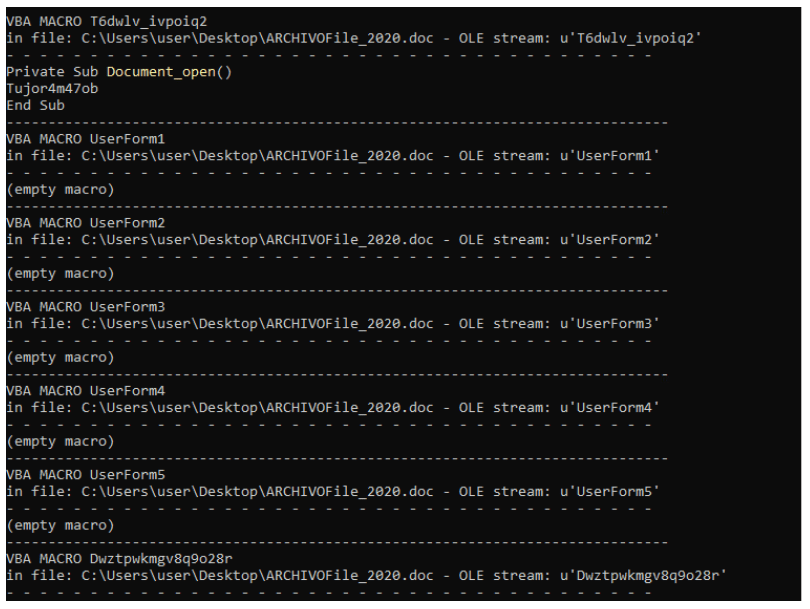 Emotet contains highly obfuscated VBA code extracted using the OLEVBA tool as there are too many macro streams in the Emotet Malicious Office Documents. The interesting function that popped up Document_Open() enables the macro to run. The OLEBVA description for the Document_Open() function runs when the Word or Publisher document opens.