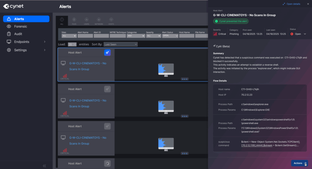 - In addition, in release 4.27 we focused on CyAI, Cynet’s proprietary AI engine. With this release, CyAI improved to provide real-time analysis, comprehensive threat detection, proven reliability, continuous improvement, and exclusive innovation.