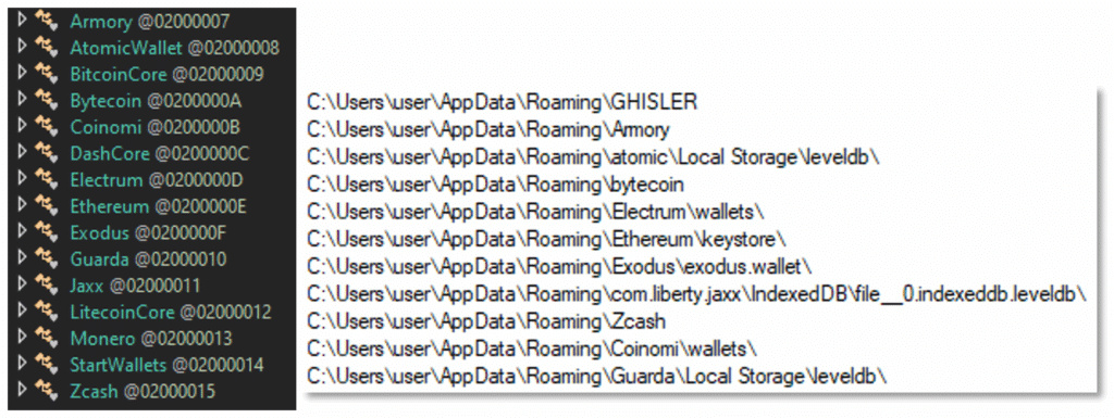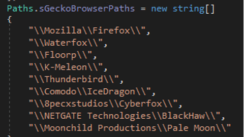 The stealer looks for credentials from:
