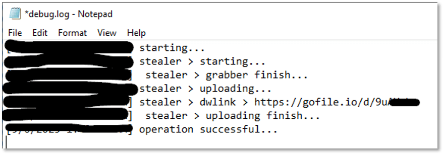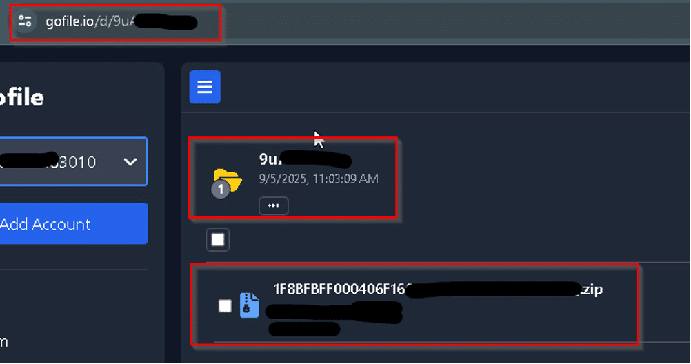 The stealer uploads the file to “upload[.]gofile[.]io” a free file-sharing service that allows users to upload, store, and share files:
