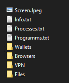 The stealer creates a folder to store all the stolen data: