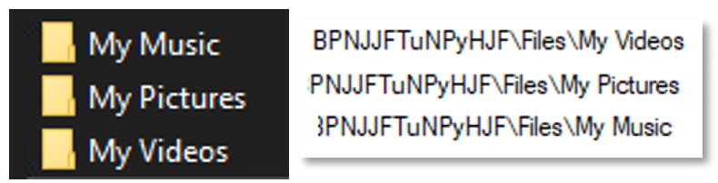 - Music, pictures and videos folders: