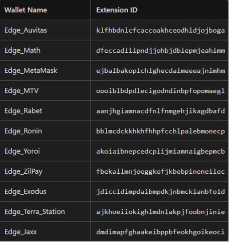 - Edge crypto wallet extensions