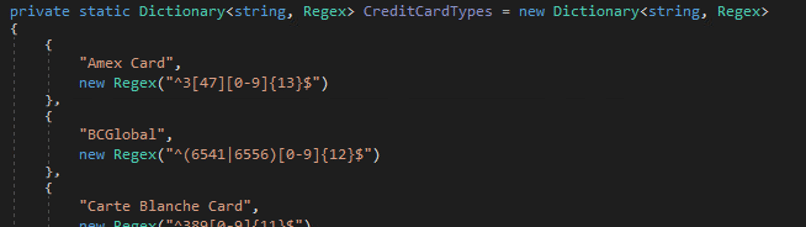 - Credit card types