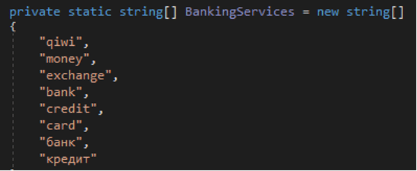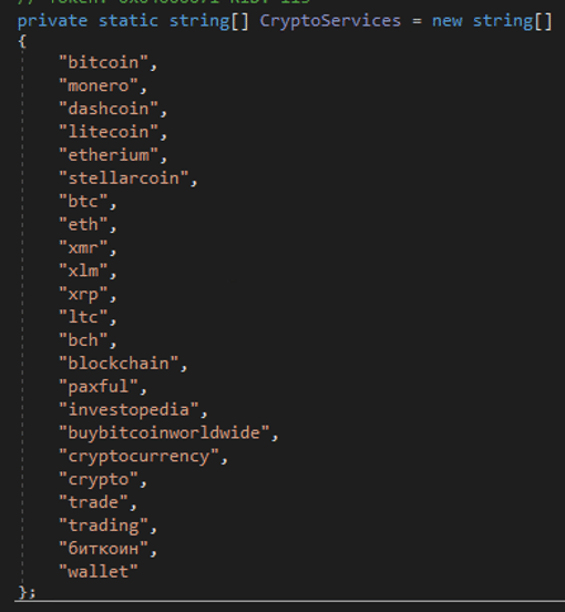 The stealer searches for financial data: