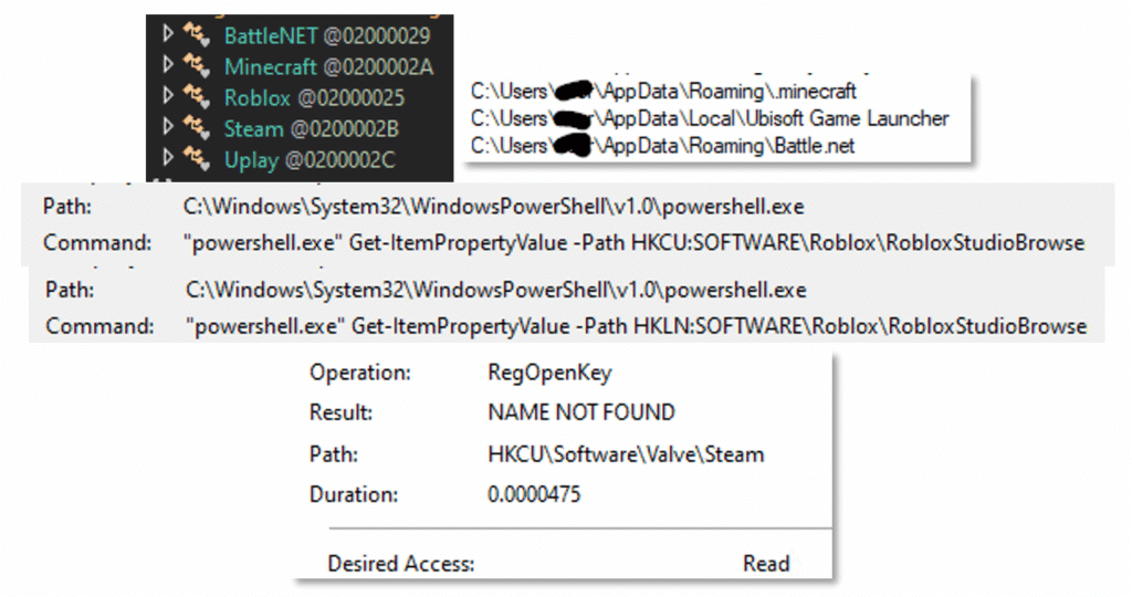 The stealer scans for info related to gaming platforms.