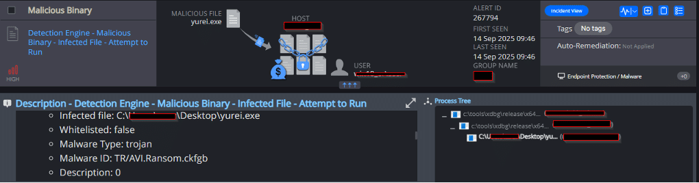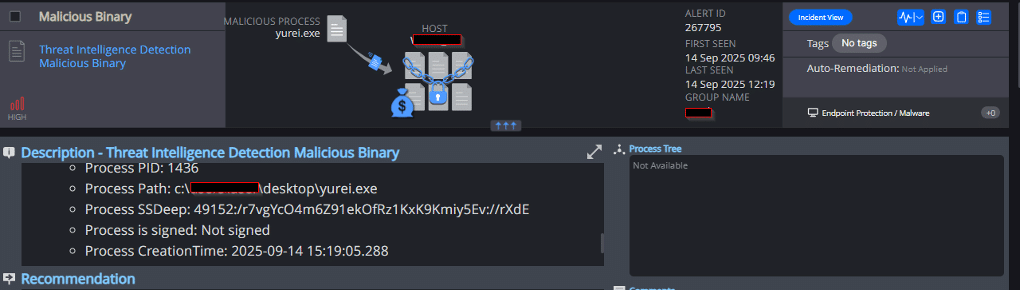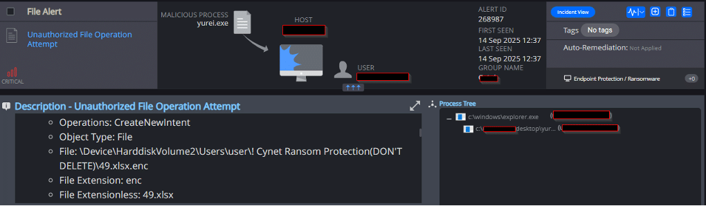 Note: Cynet can detect and prevent this malware using multiple mechanisms. During this simulated execution, Cynet’s Cybersecurity Platform is configured in detection mode (without prevention) to allow Yurei ransomware to execute its full flow. This lets Cynet detect and log each step of the attack.