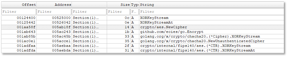 - golang.org/x/crypto/chacha20.NewUnauthenticatedCipher indicates the malware can use the ChaCha20 stream cipher.