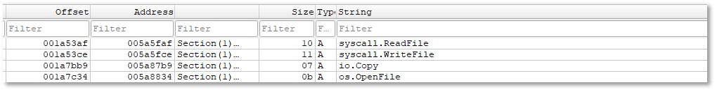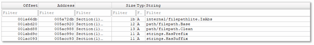 The presence of internal/filepathlite.IsAbs, path/filepath.Base, and path/filepath.Clean shows that the malware normalizes and validates file paths, ensuring it can handle both absolute and relative paths consistently. Combined with strings.HasPrefix and strings.HasSuffix, the malware is able to check for specific filename patterns or extensions. This indicates a deliberate mechanism for filtering and controlling which files are processed.