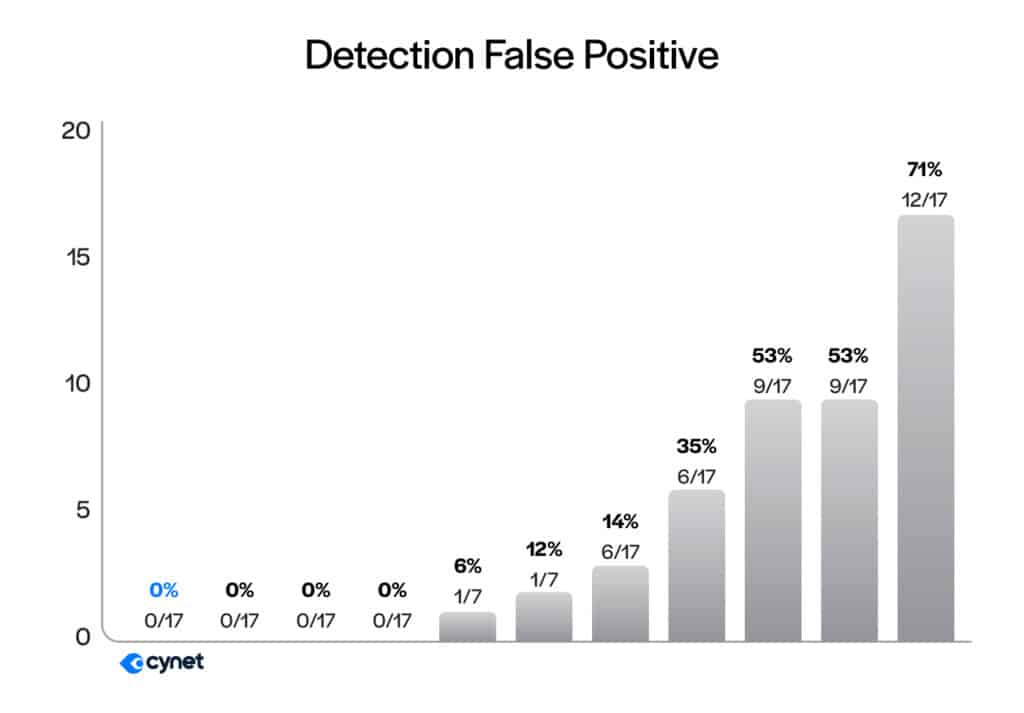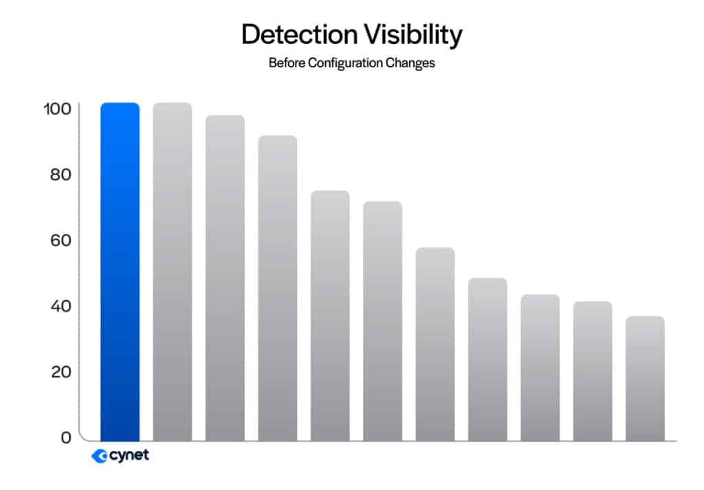 Cynet delivered 100% Detection Visibility in the Initial Run, flagging every attack event with no configuration changes, delays or false positives.