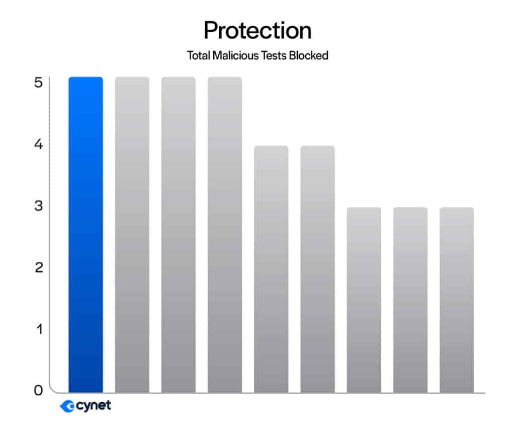 The Protection scenario comprised 5 attack steps. Cynet blocked every one of the 5 attack steps at the Entry vector, ensuring no malicious activity could execute, no credentials were stolen, and no data exfiltrated.