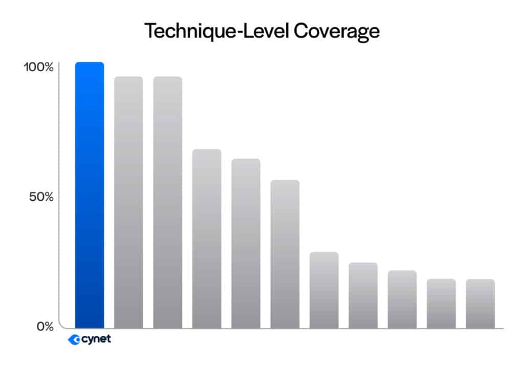 This year’s evaluation included 90 malicious sub-steps executed across Windows, Linux, and AWS cloud environments, making it the most comprehensive ATT&CK test to date. Cynet detected every single one of the 90 sub-steps, and importantly, MITRE validated each detection at the highest possible fidelity level: Technique. This distinction matters. Technique-Level Coverage provides precise, actionable insight into exactly what an adversary is doing, without ambiguity or generic classifications.